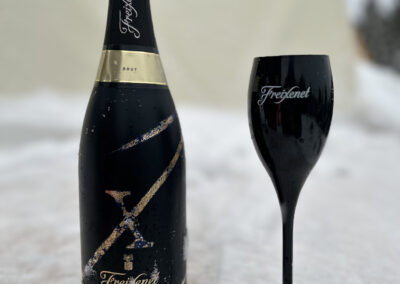 Dégustation du Cava entre chiens et loups sur notre térasse panoramique à 2100m.